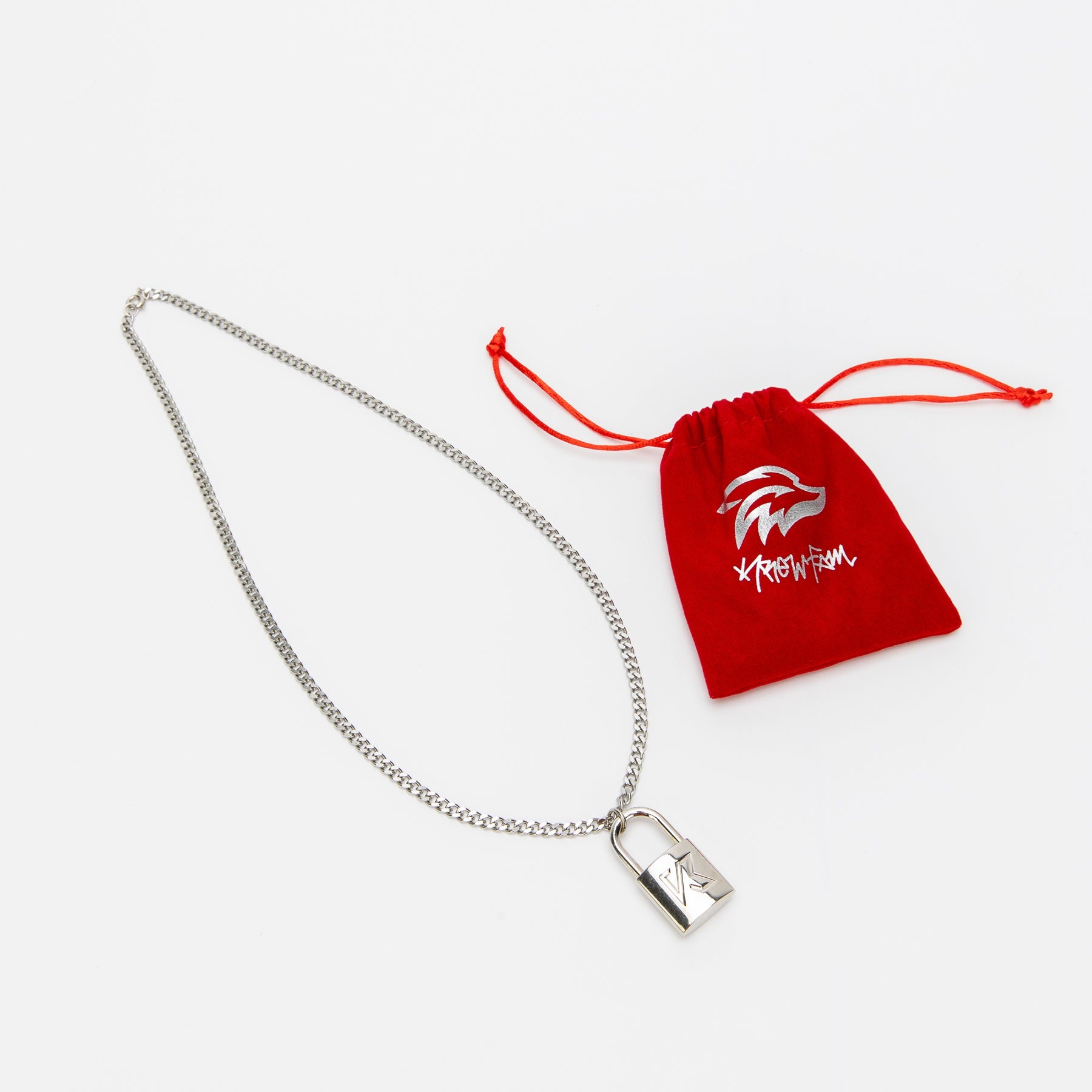 Padlock pendant with the KF & KREW "K" logos engraved on each side